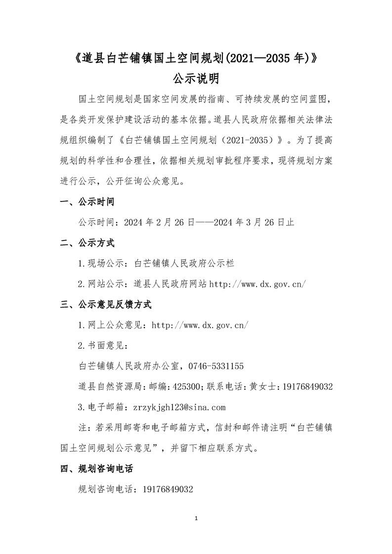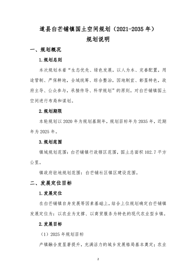 《道县白芒铺镇国土空间规划(2021—2035年)》公示说明