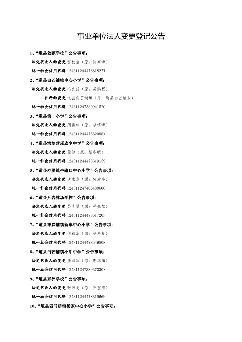 2023年道县事业单位法人变更登记公告(变更公告第202309期)