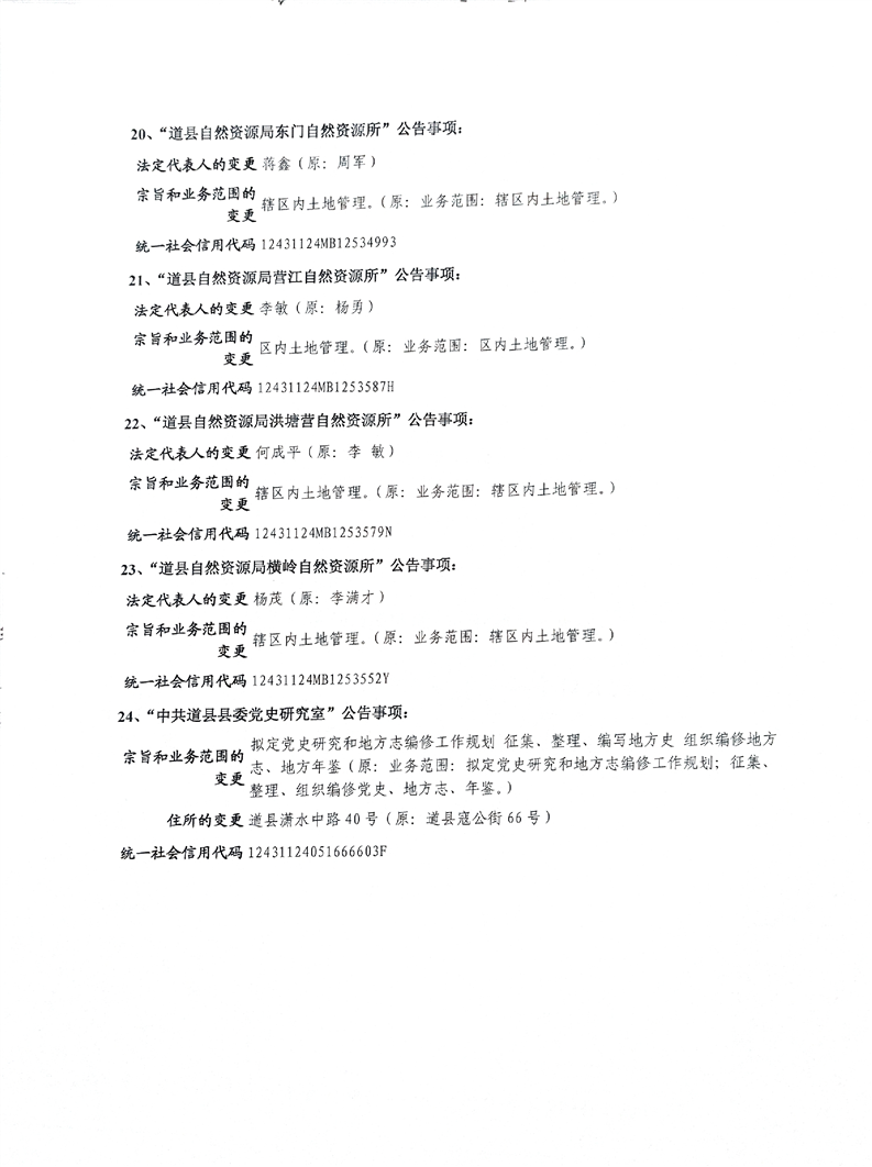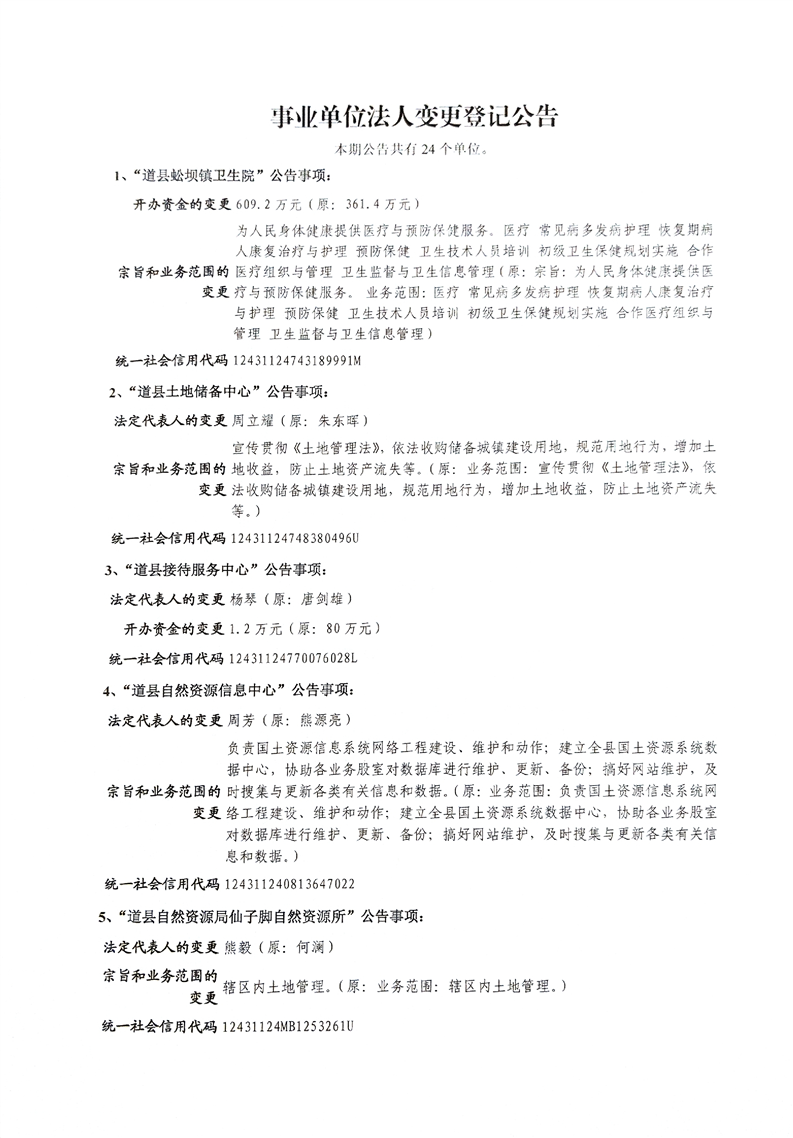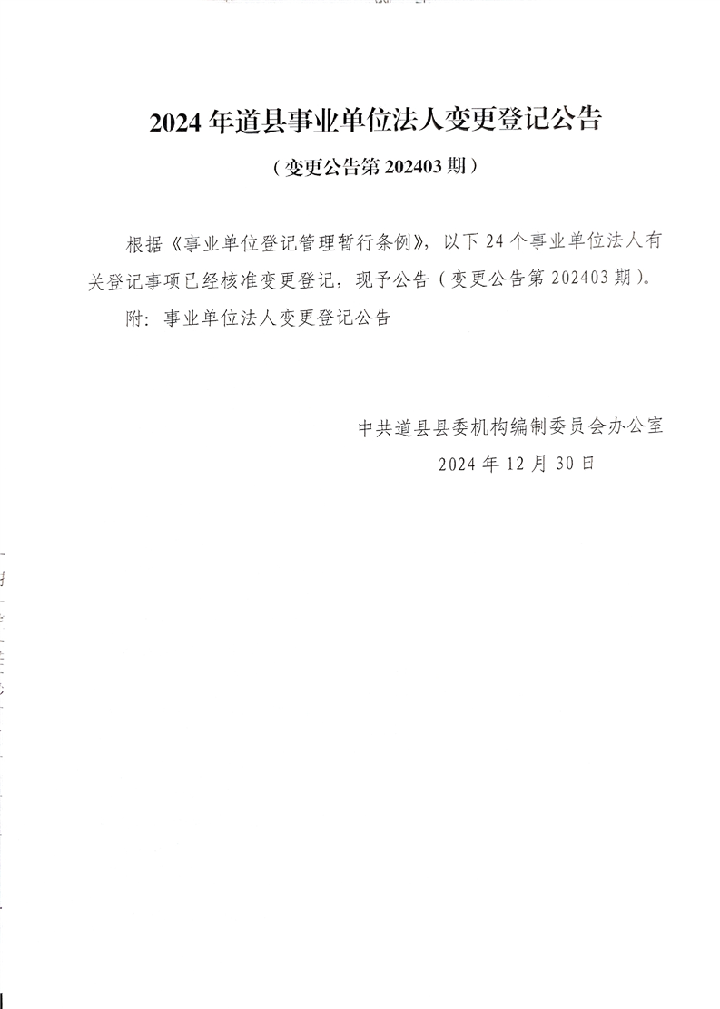 2024年道县事业单位法人变更登记公告(变更公告第202403期)