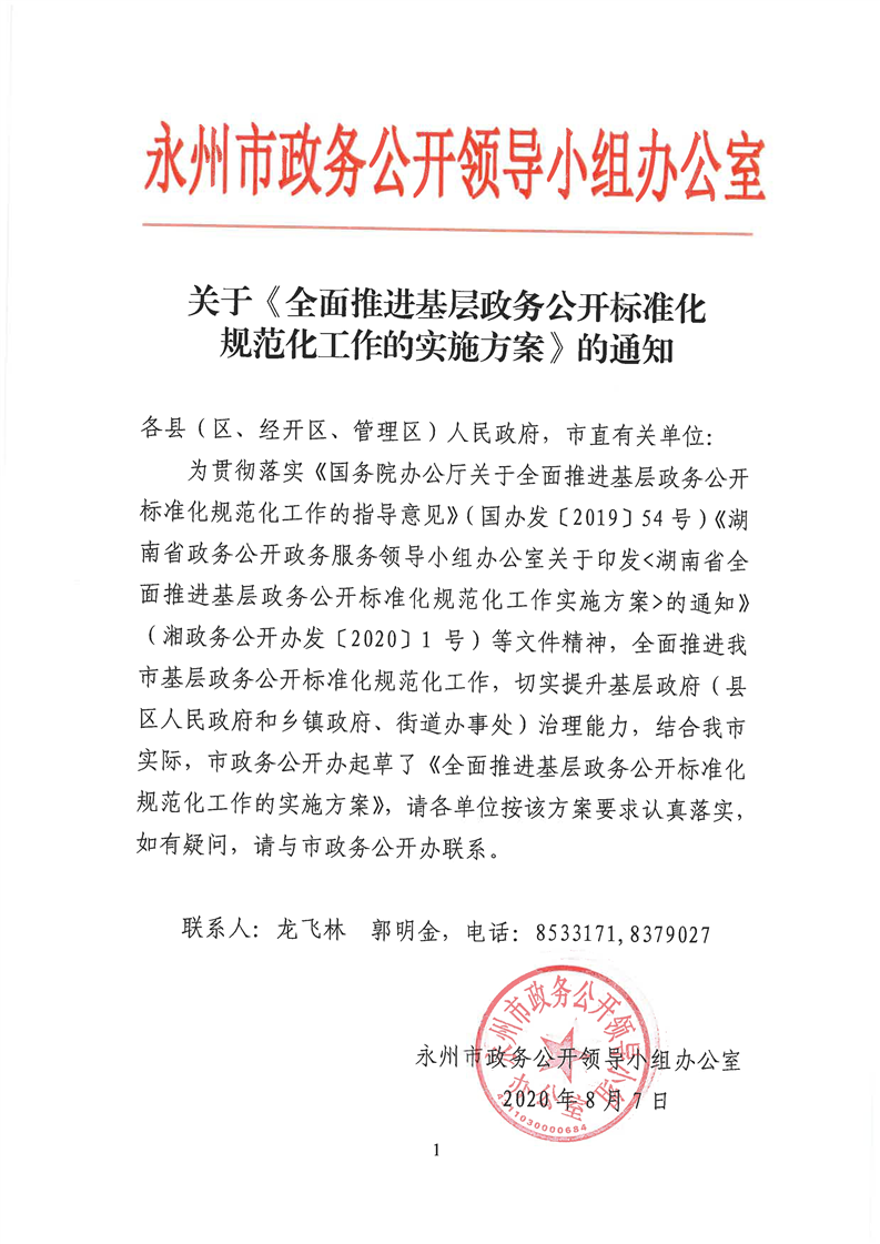 关于《全面推进基层政务公开标准化规范化工作的实施方案》的通知