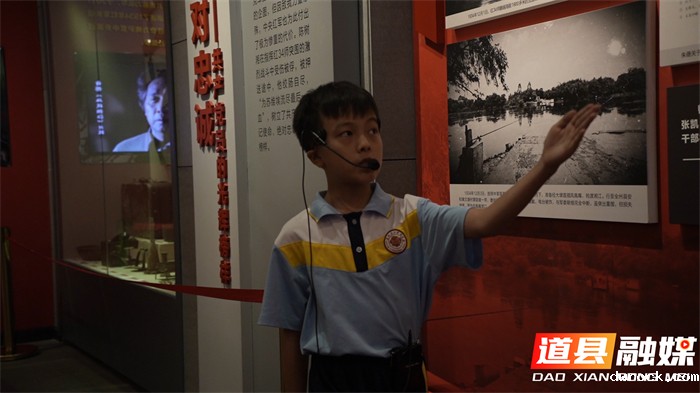 在道县陈树湘烈士生平事迹陈列室,今年四年级的小小讲解员胡哲安,正声情并茂地为前来参观的游客讲解陈树湘师长的革命故事。面对众多的游客,他从容不迫,一个个红色小故事、一个个历史片段从他专业的讲解中流露出来,仿佛将人们带入了那个战火纷飞的年代。讲解完毕后,现场响起了阵阵掌声。
