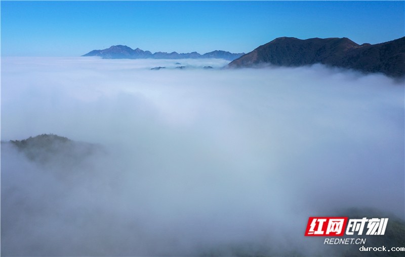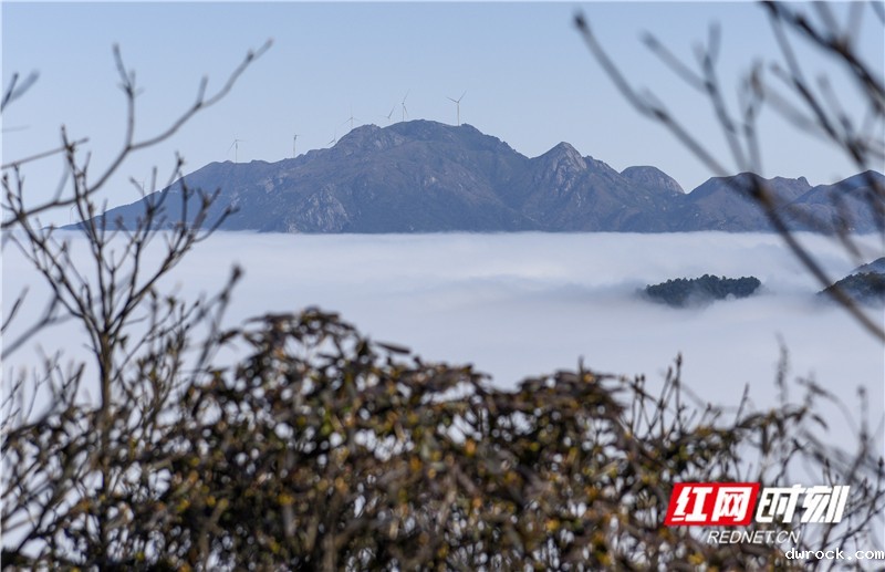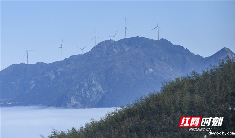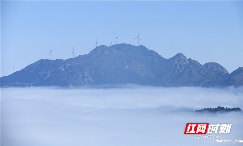 冬日时节,湖南省永州市道县洪塘营瑶族乡云海涌动,山峦、林木、风电在云海中若隐若现,美若画卷。(红网时刻记者 于佳丽 通讯员 蒋克青)