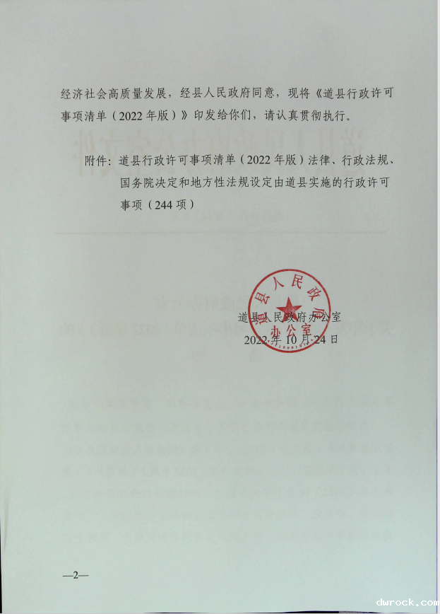 开云体育官网app在线观看下载关于印发《道县行政许可事项清单(2022年版)》的通知