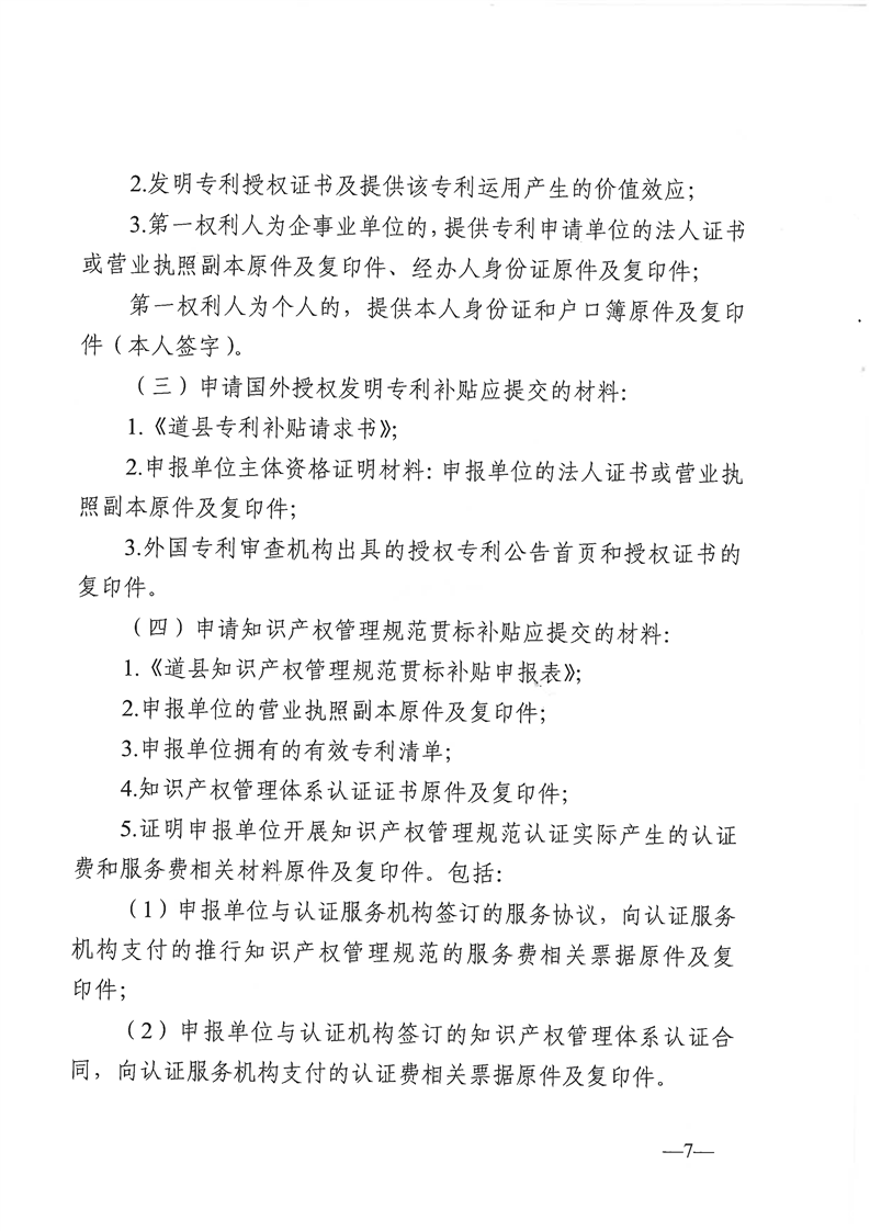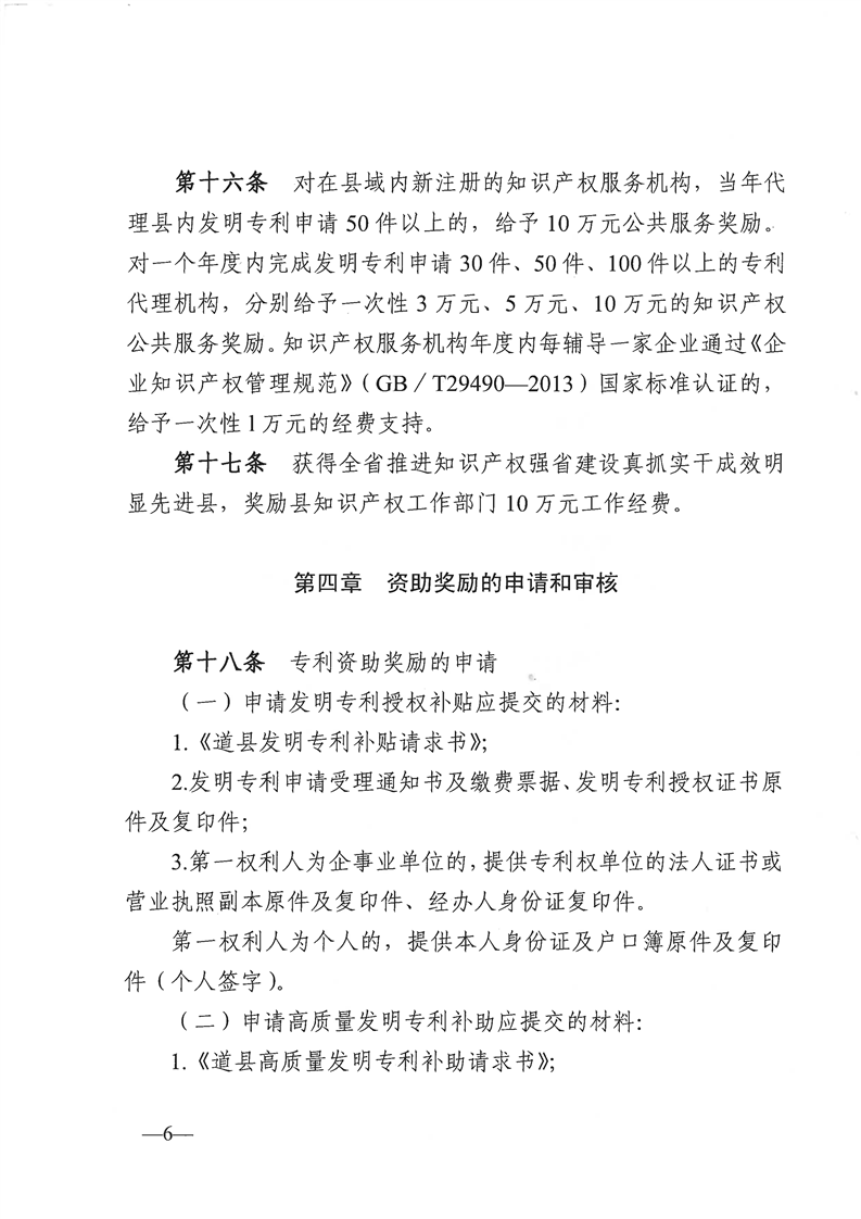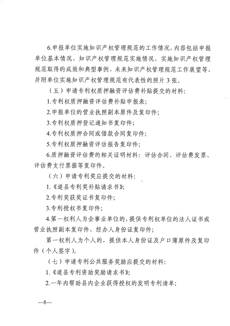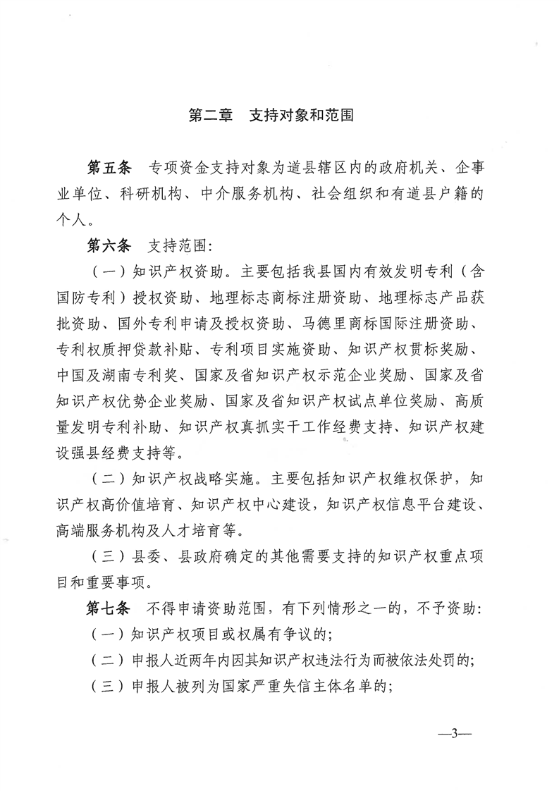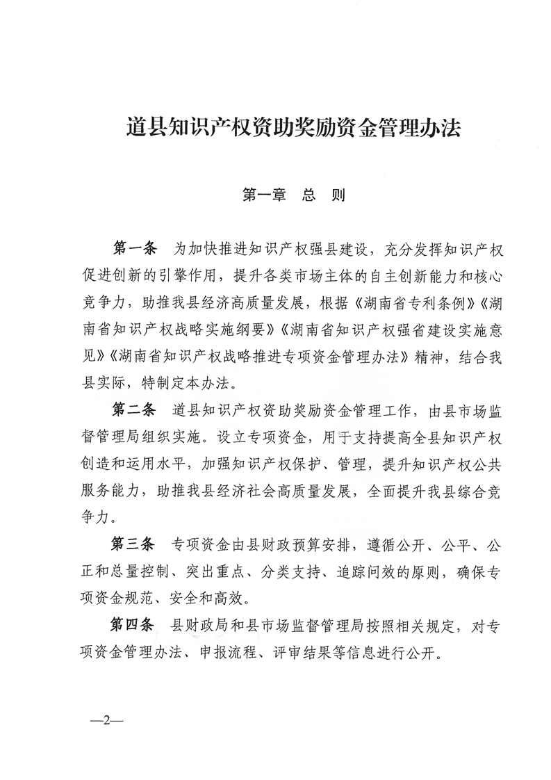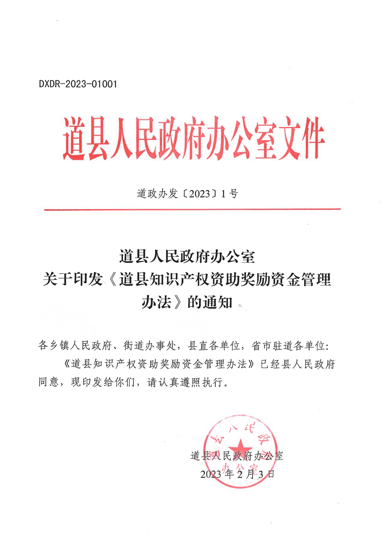 《道县知识产权资助奖励资金管理办法》的通知(道政办发〔2023〕1号)