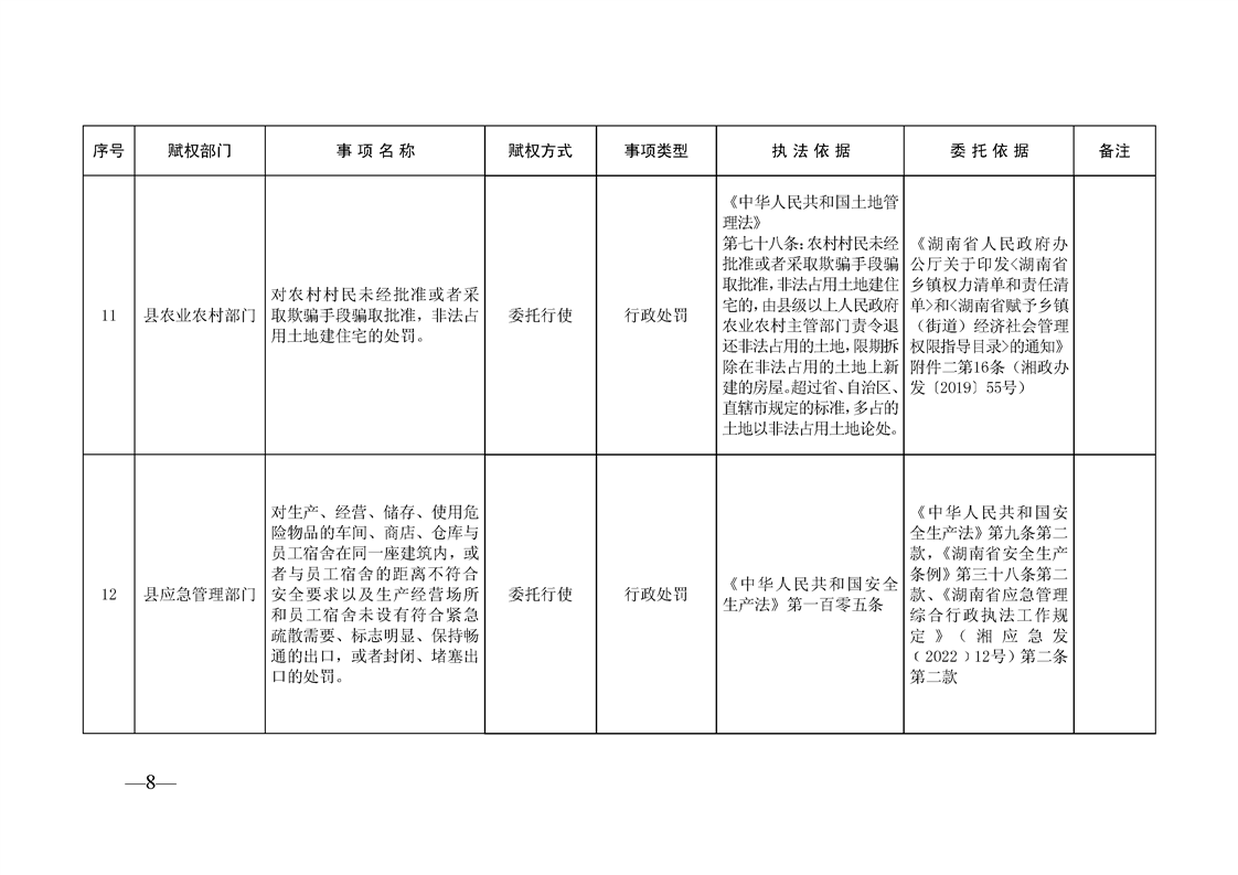 关于印发《道县县直部门委托乡镇(街道)行政执法事项清单》的通知