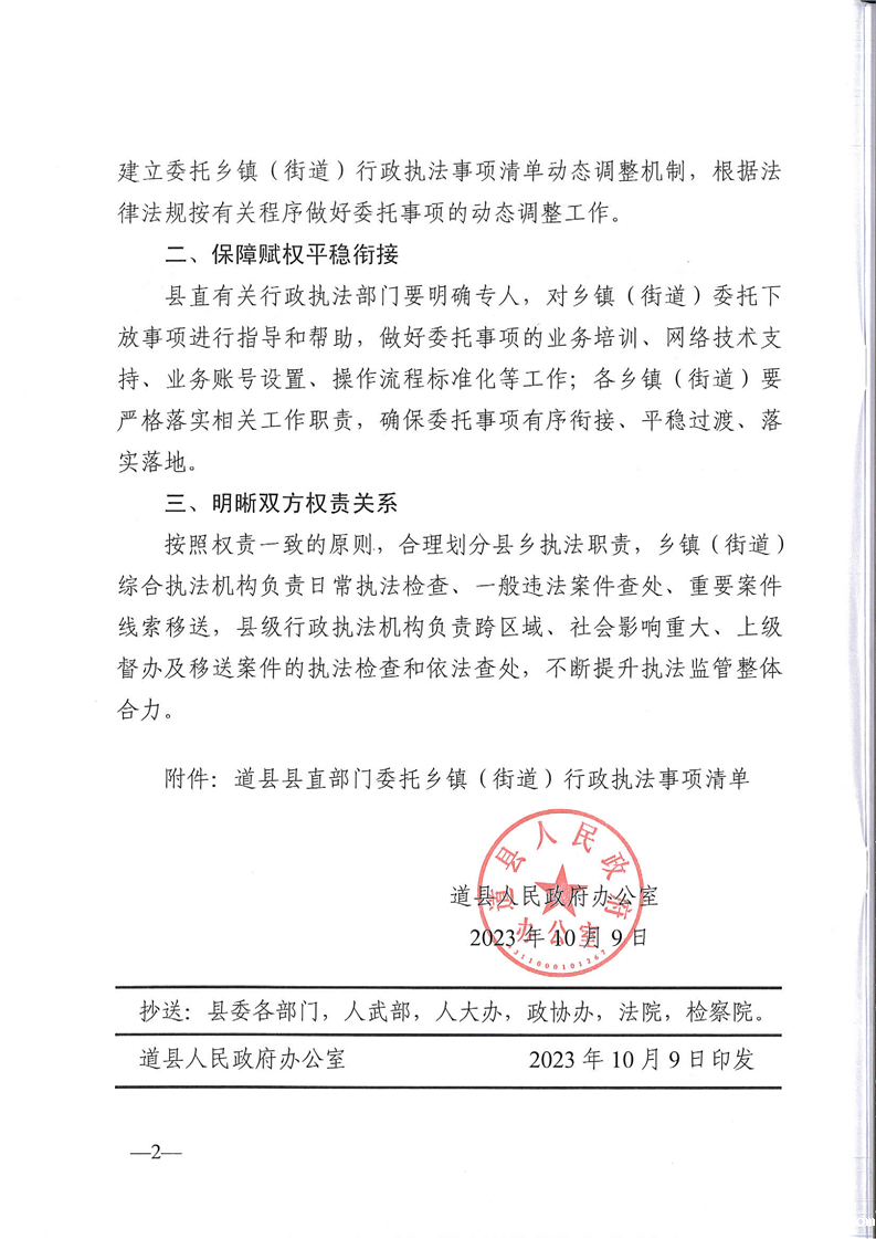 开云体育官网app在线观看下载关于印发《道县县直部门委托乡镇(街道)行政执法事项清单》的通知
