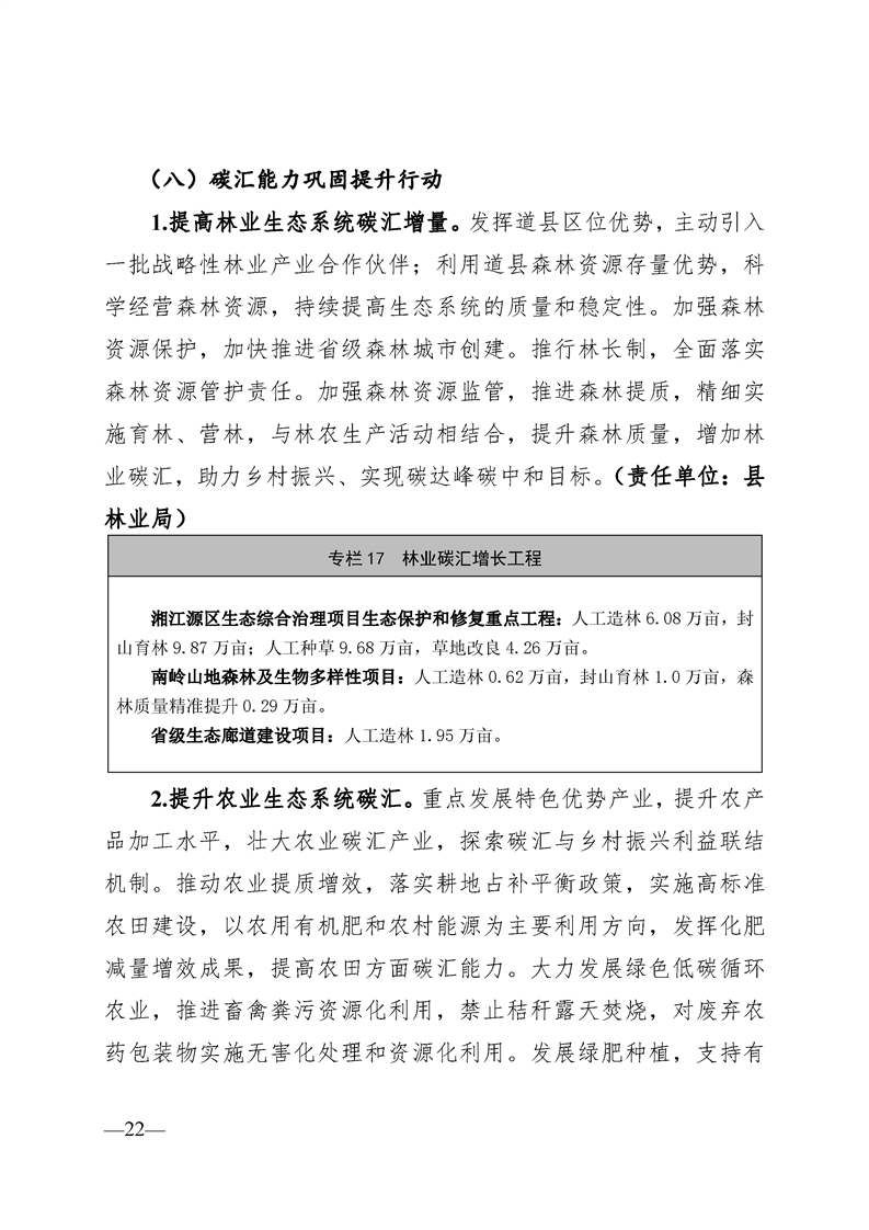 道县发展和改革局关于《道县碳达峰行动方案》的政策解读