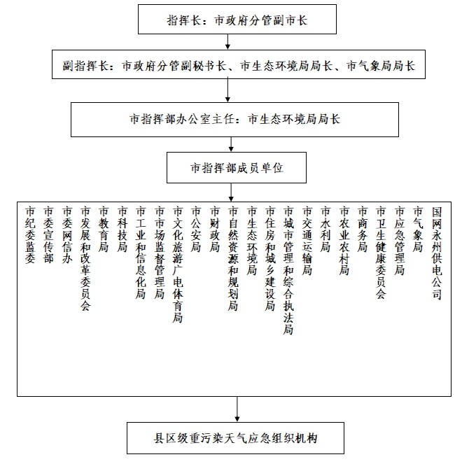 市人民政府设立永州市重污染天气应急指挥部,统一领导、指挥和组织协调全市重污染天气应对工作。