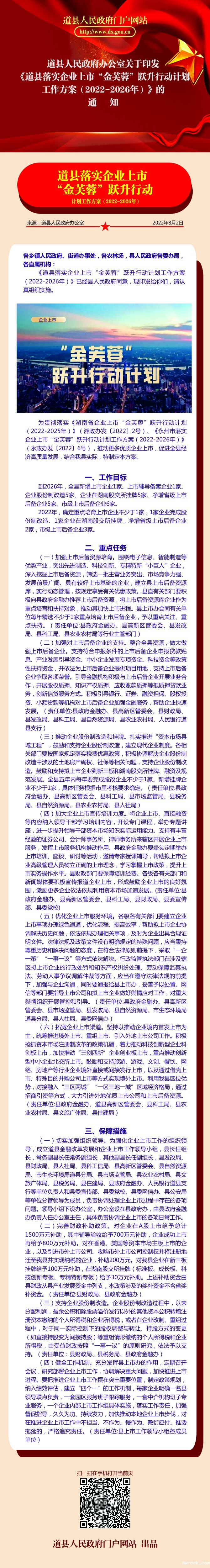 开云体育官网app在线观看下载关于印发《道县落实企业上市“金芙蓉”跃升行动计划工作方案(2022-2026年)》的通知