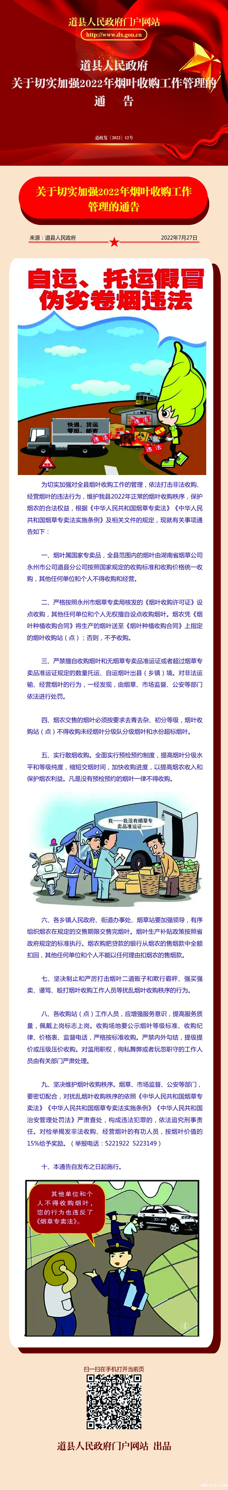 道县烟草专卖局关于《切实加强2022年烟叶收购管理的通告》的政策解读