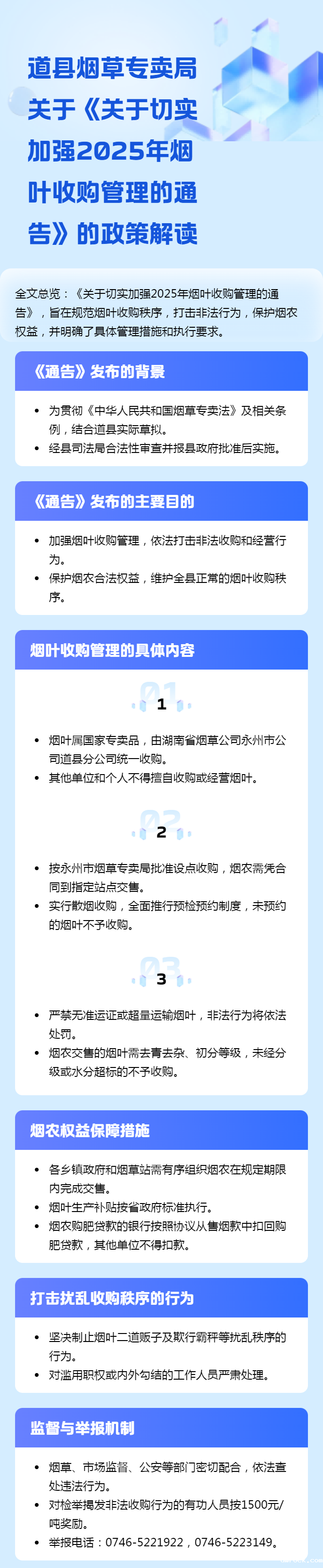道县烟草专卖局《关于切实加强2025年烟叶收购管理的通告》的政策解读