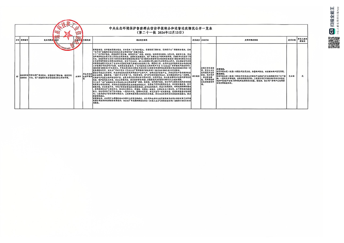 第二十一批 华新水泥厂 公开情况一览表