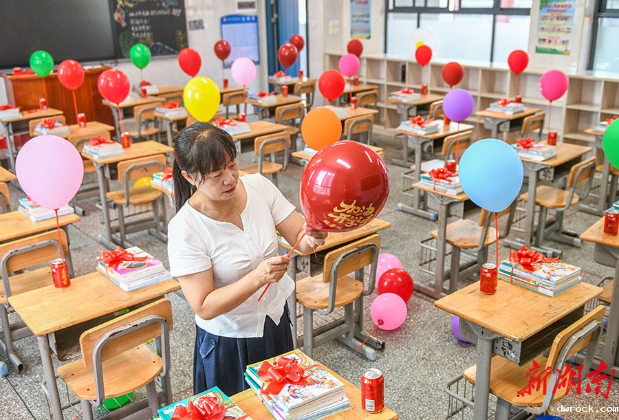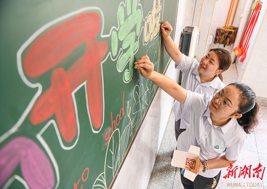 8月29日,道县道州玉潭(东阳)学校,老师在精心布置教室。新学期开学在即,道县各地学校加紧开展教室布置、卫生清理、安全检查、书本发放等准备工作,迎接新学期。蒋克青 蒋凭姣 摄影报道(湖南图片库)