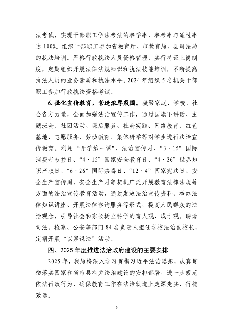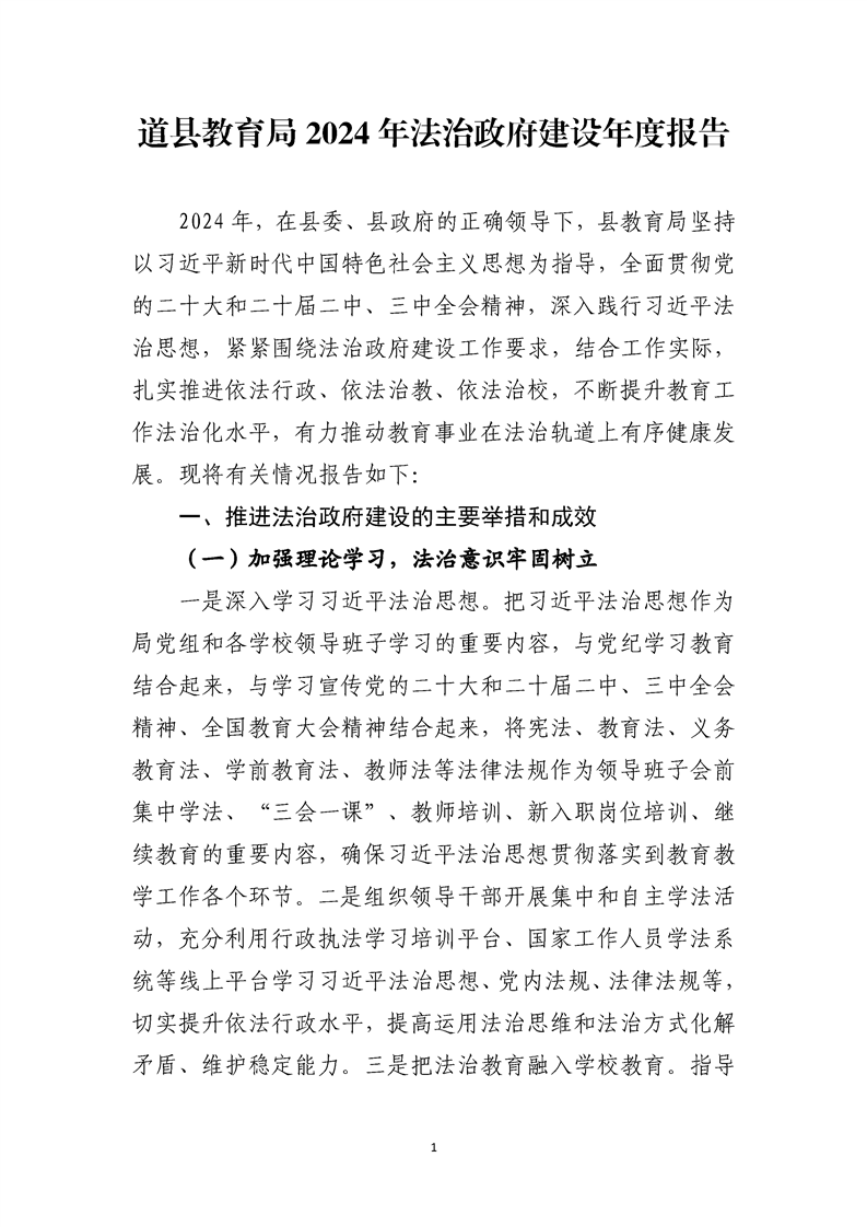 道县教育局2024年法治政府建设年度报告