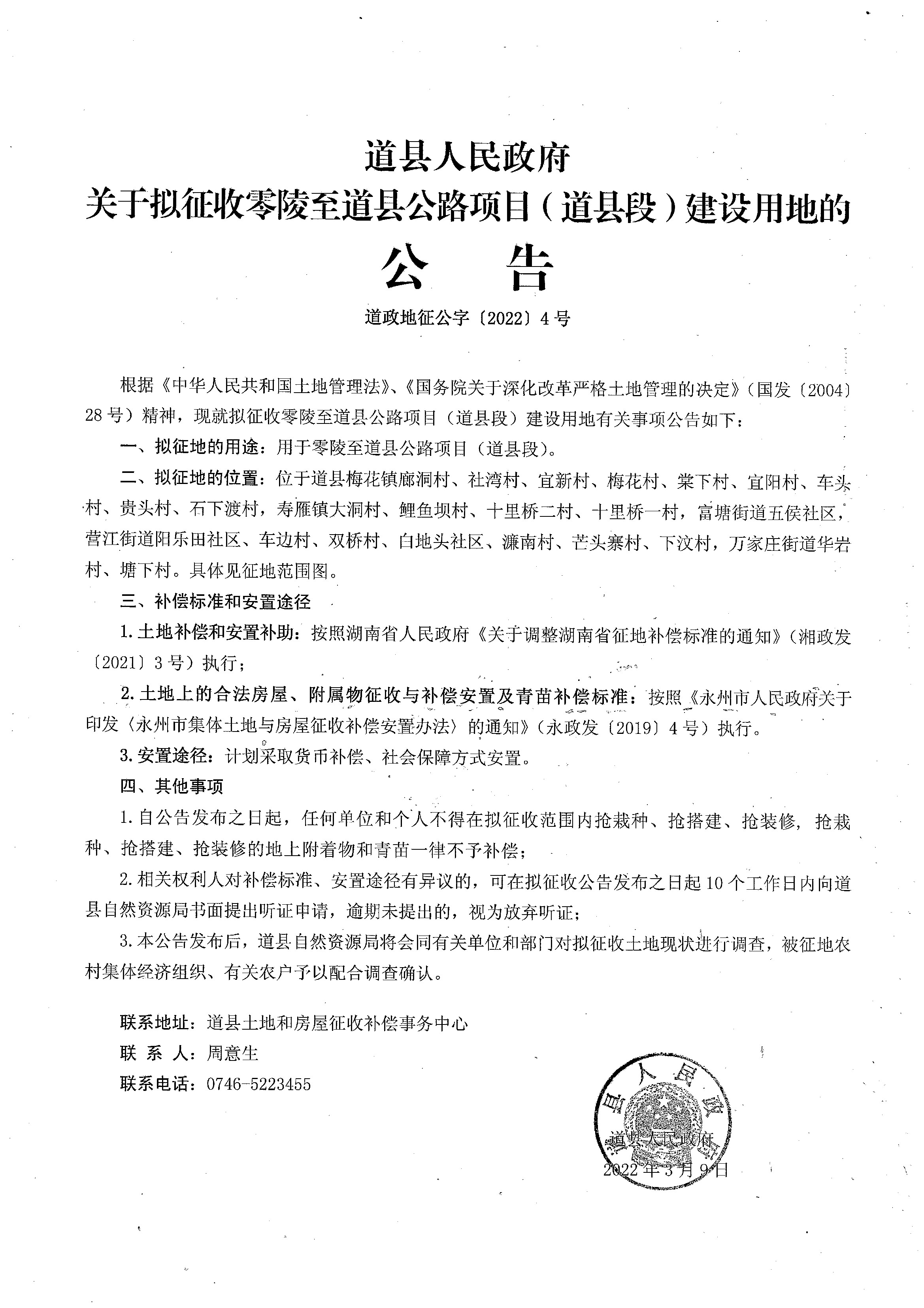 道政地征公字【2022】4号