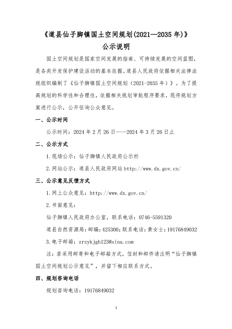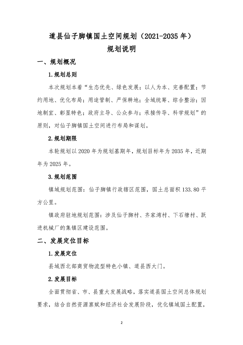《道县仙子脚镇国土空间规划(2021—2035年)》公示说明
